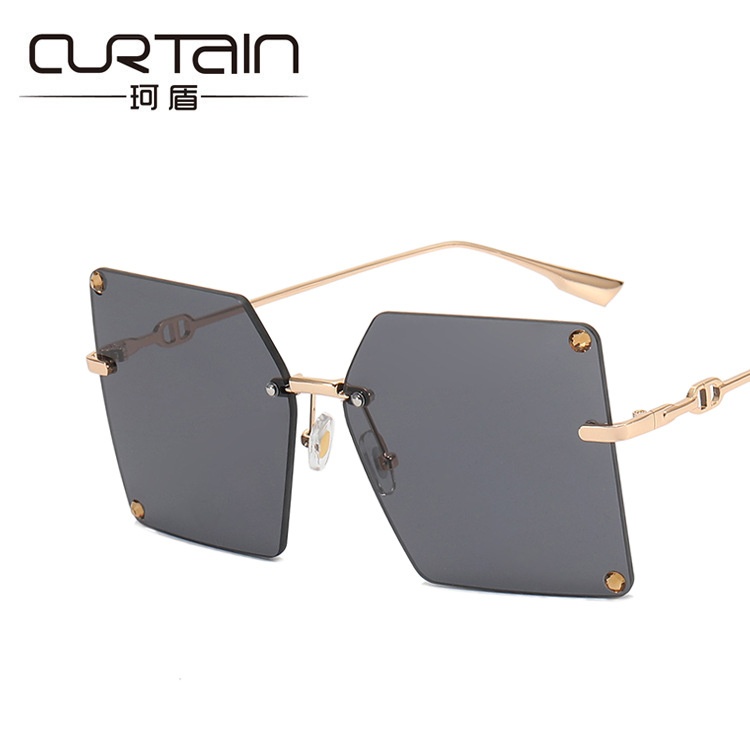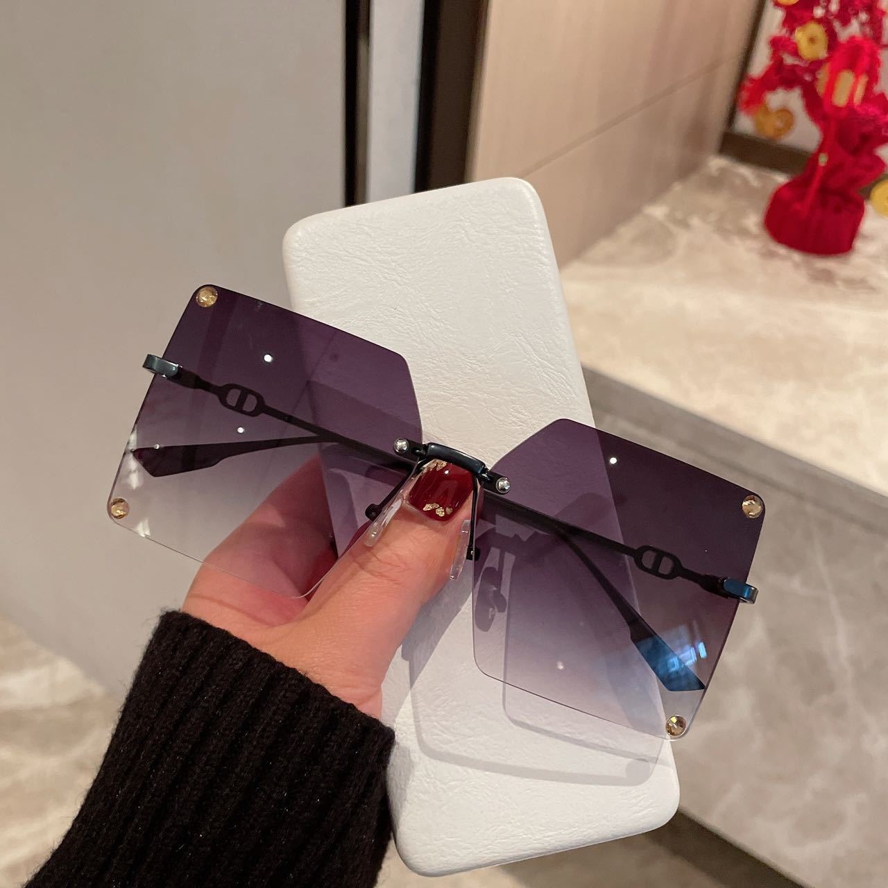 方形镶钻铆钉太阳镜2022新款无框墨镜网红同款太阳眼镜网红凹