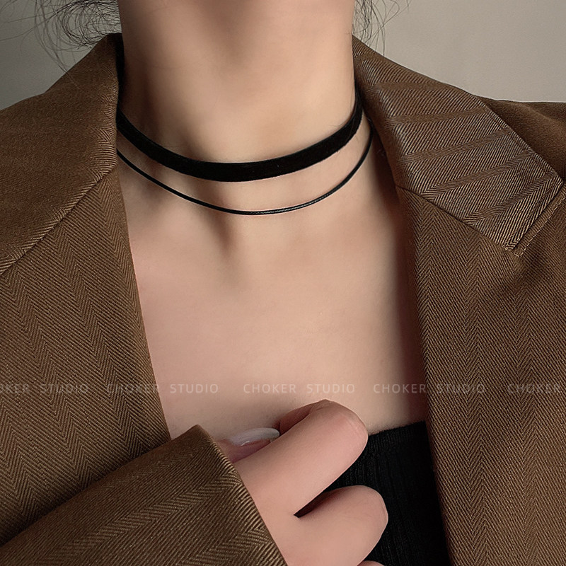 倪妮同款项链choker黑色脖颈链项圈锁骨链绳女高级感简约百搭配饰