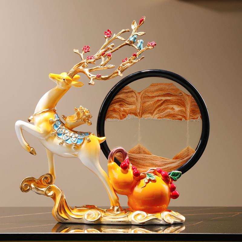 招财鹿创意葫芦流沙画摆件轻奢高档客厅玄关装饰品新家乔迁礼物