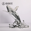 现代轻奢高档合成树脂银色跳跃鲸鱼大号摆件办公室内桌面软装饰品
