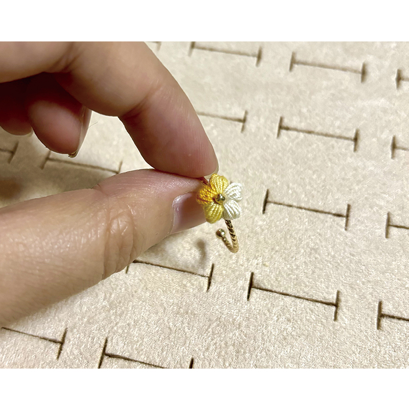 买3送1 纯手工微钩泡芙花戒指开口小花戒指花朵耳钉蕾丝线钩织