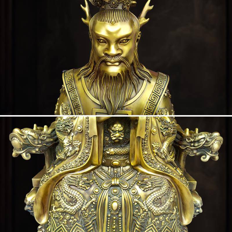 黄铜龙王爷铜像东海龙王摆件坐龙椅大号家用客厅工艺品装饰开业