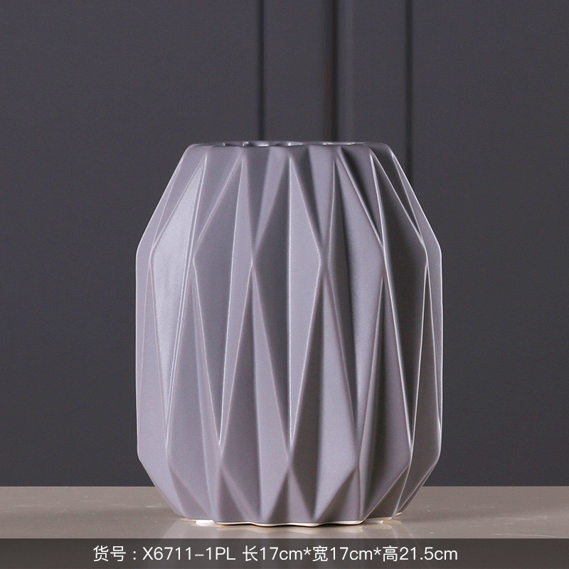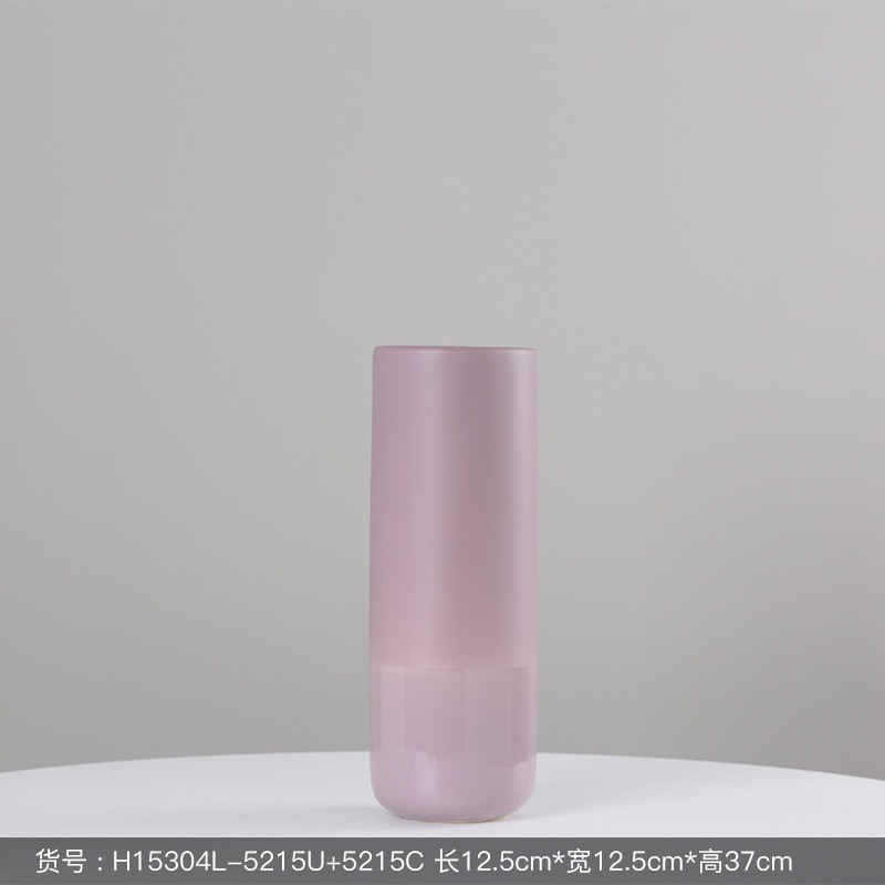 博西家居亚光陶瓷花瓶暖粉色灰色直筒客厅餐桌玄关陶瓷插花器