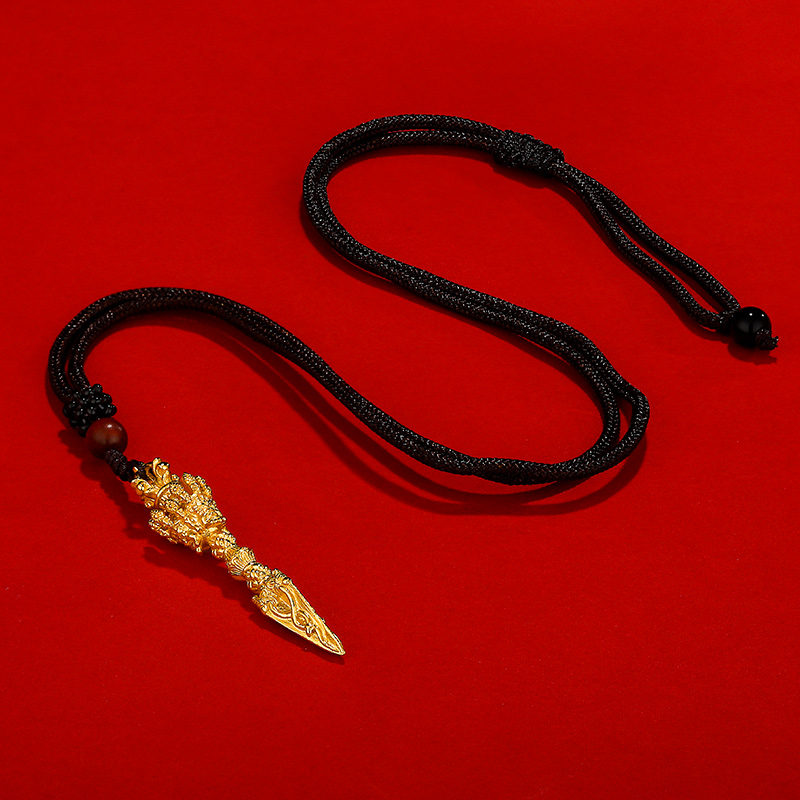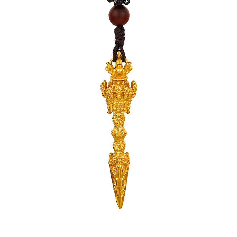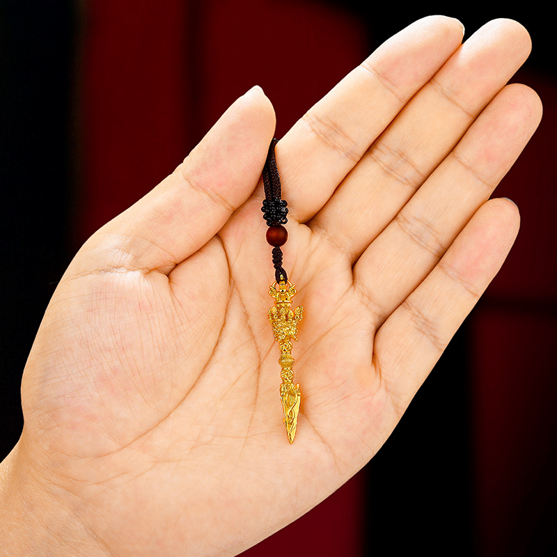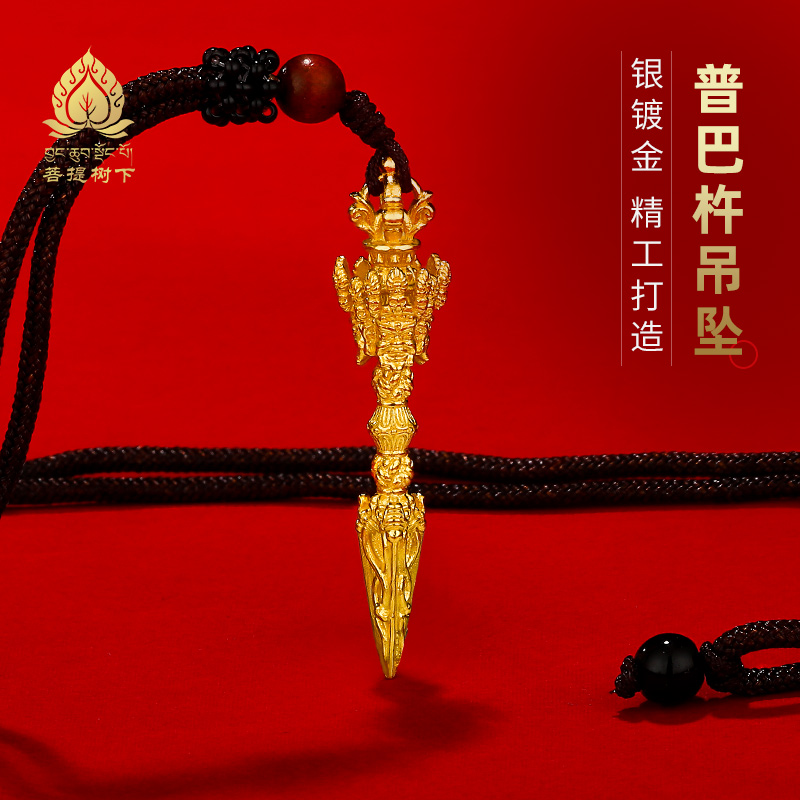 S925纯银镀金三面普巴金刚杵吊坠随身挂件普巴杵吊项链坠