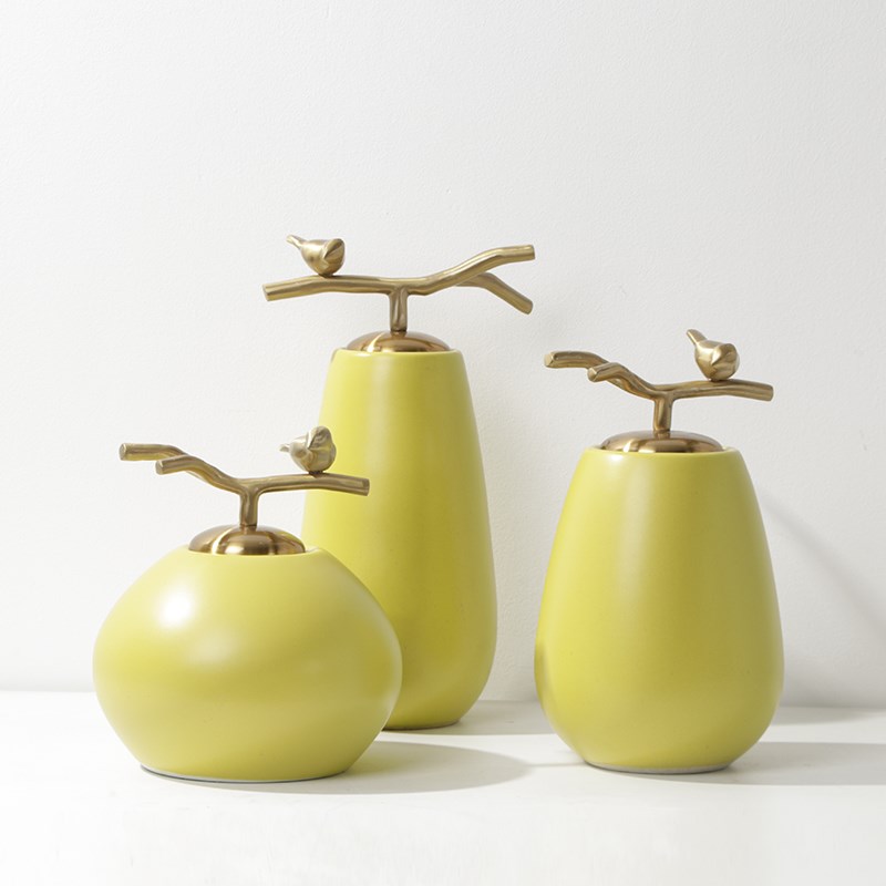 新中式小鸟树枝陶瓷罐摆件样板房客厅电视柜书柜酒柜办公室装饰品