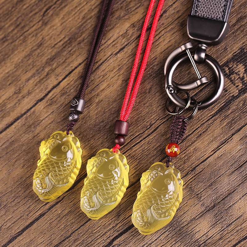 天然黄水晶锦鲤吊坠男女士佩戴文昌鱼挂件钥匙扣包包挂饰礼物