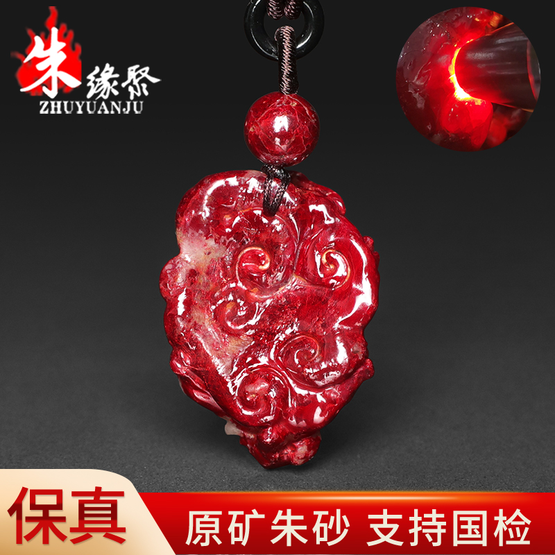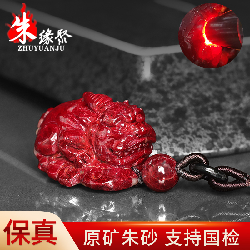 朱缘聚朱砂吊坠男款正品官方旗舰店原矿石部分透光雕刻貔貅挂件女