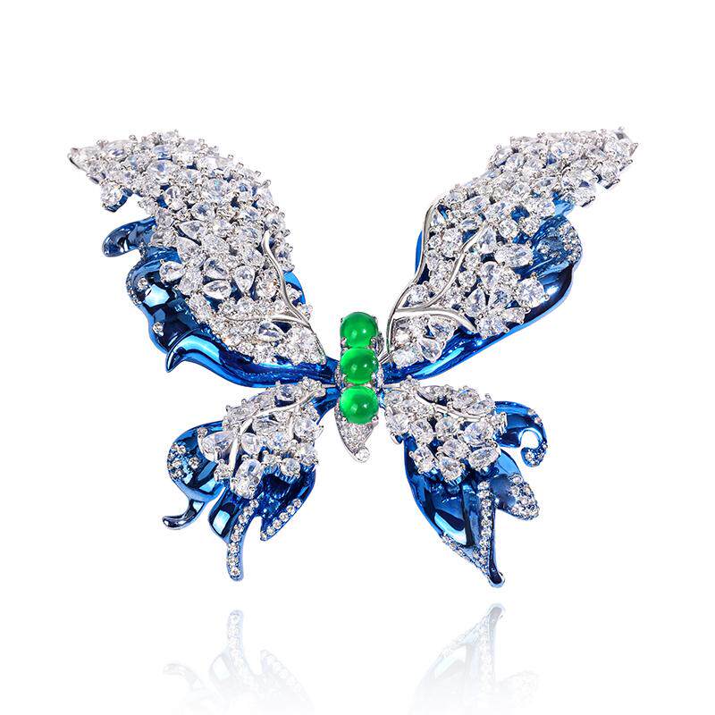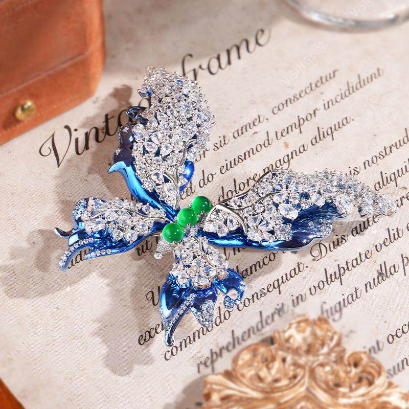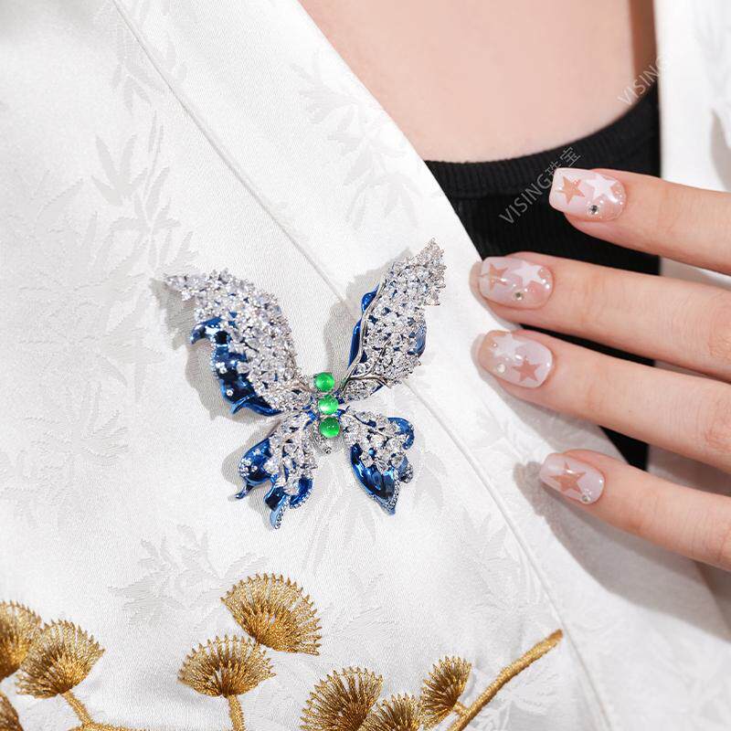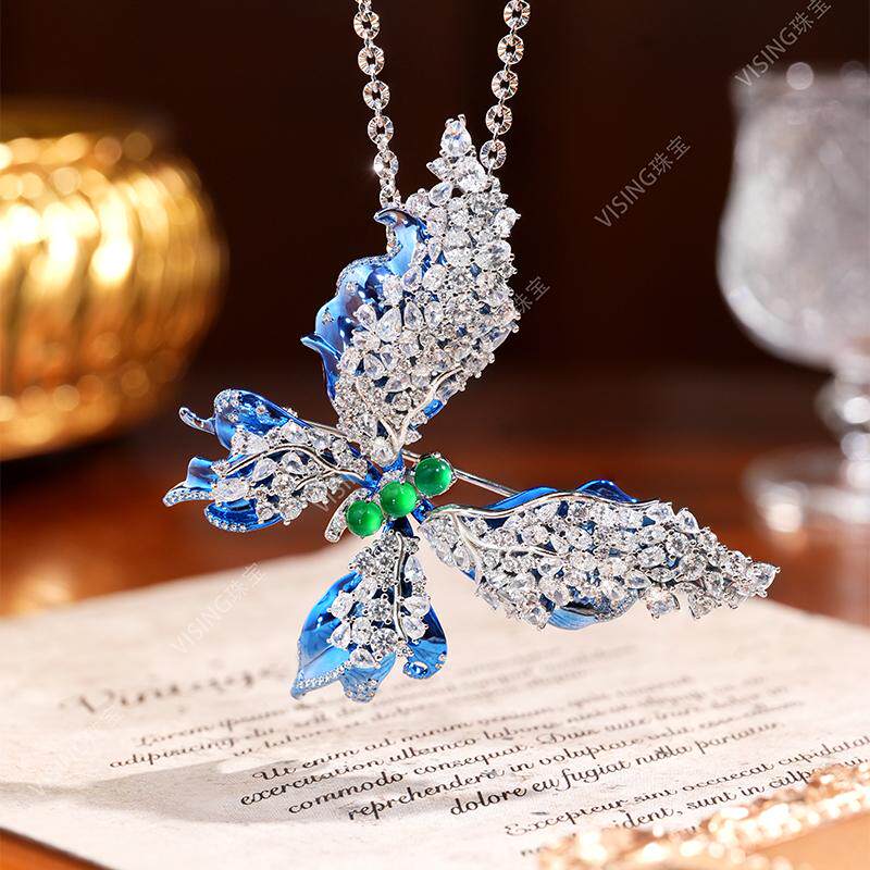 VISING珠宝蓝色彩金蝴蝶胸针吊坠两用款女梦幻国风高级感轻奢