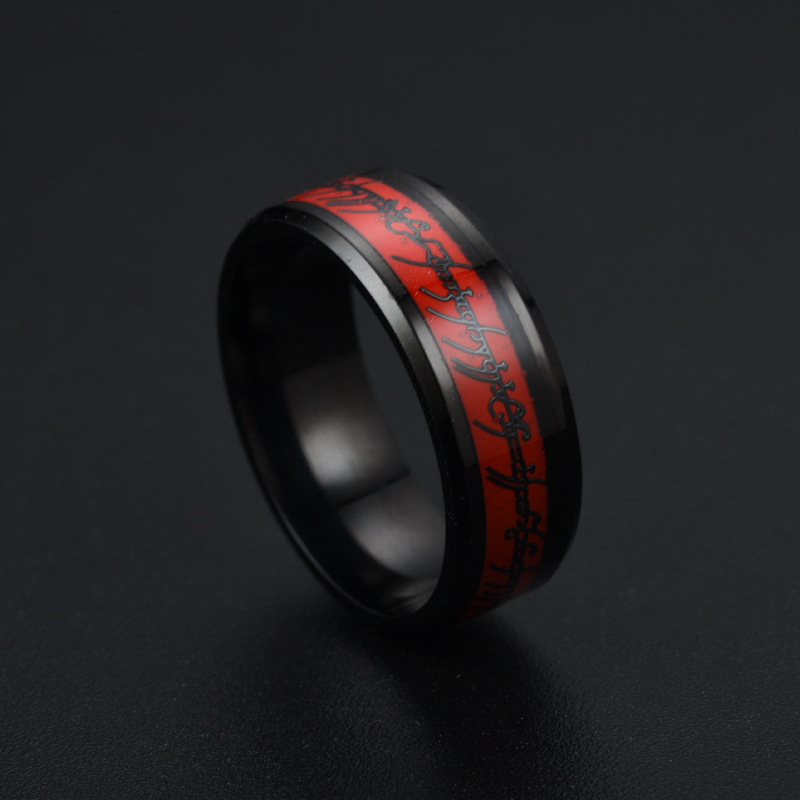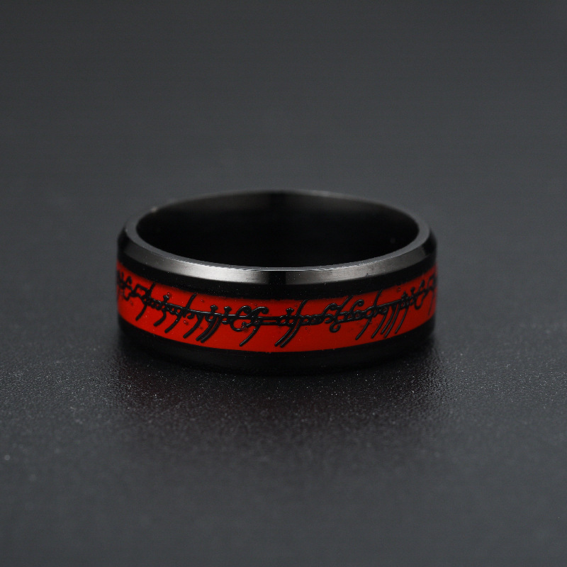 欧美时尚钛钢典雅红色底纹黑色大气魔戒指简约潮人高级感指环王
