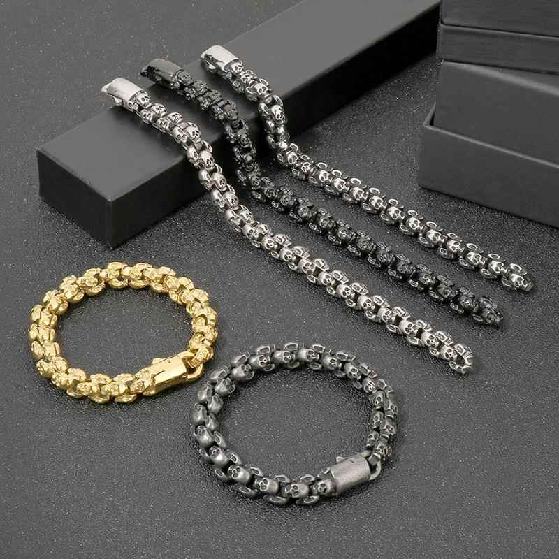 时尚复钛钢骷头手链男式髅 潮流个首性不黑色KB81锈古钢鬼头手环