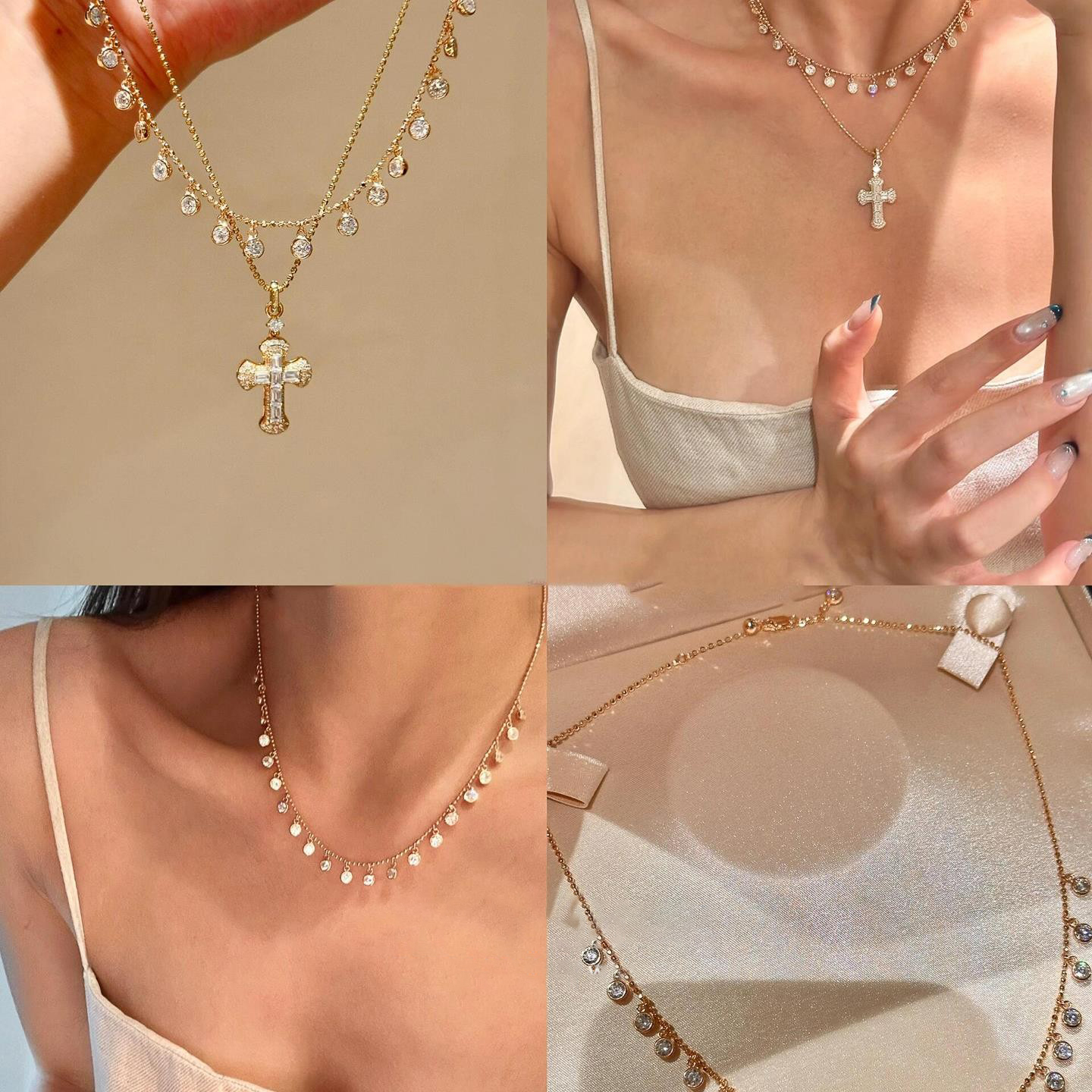 S925纯银满钻泡泡十字架吊坠项链女款轻奢小众高级感锁骨颈链