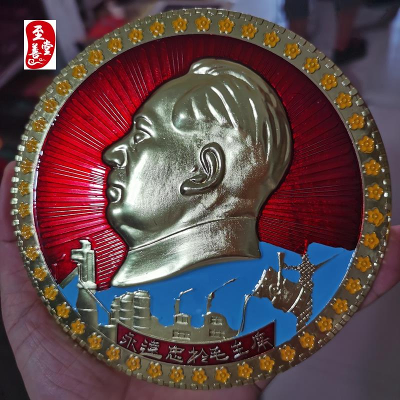 红色怀旧民收藏大俗铝质毛像章摆件小1梅超花促生产直径FPX4CM
