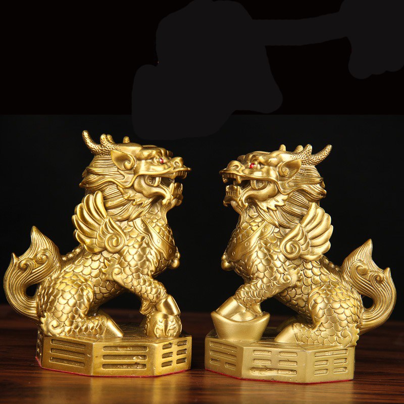 铜麒麟摆件一对镇宅纯铜八卦公母家居客厅招财创意装饰品工艺礼品