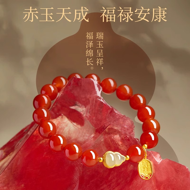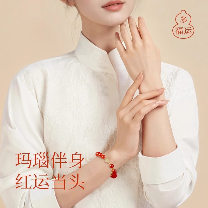 普陀山正品天然红玛瑙手串女款巴西和田玉葫芦转运珠红色水晶手链