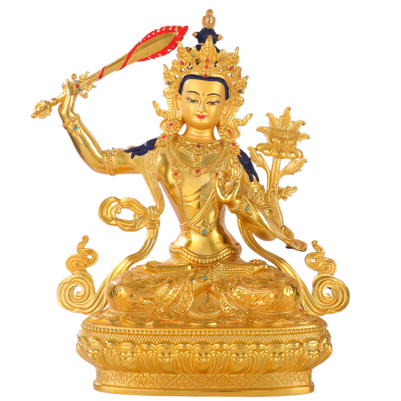 文殊菩萨佛像普贤菩萨藏传民族密宗鎏金黄铜文殊师利菩萨供佛摆件