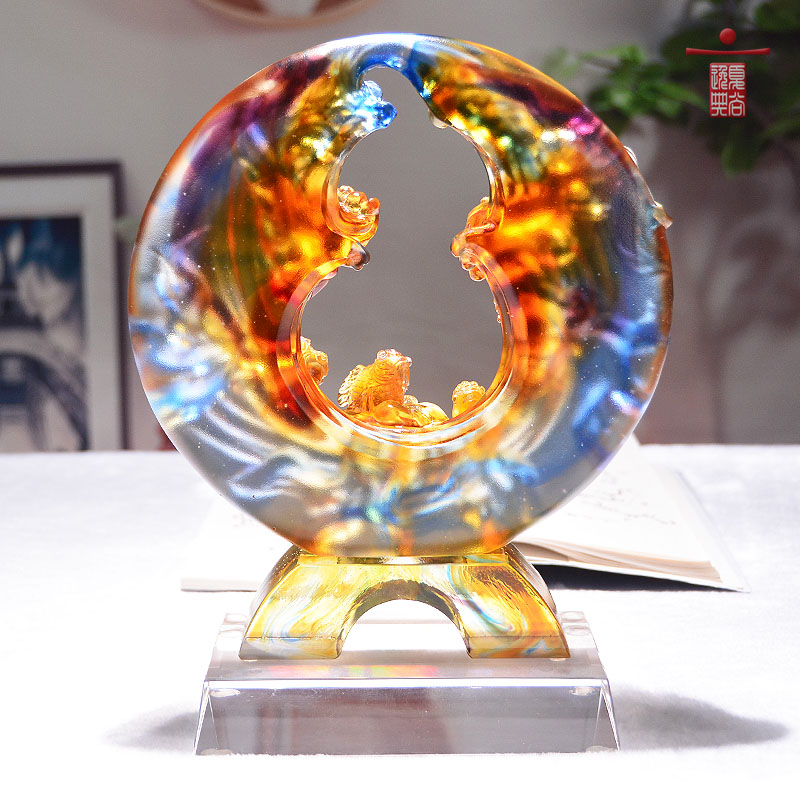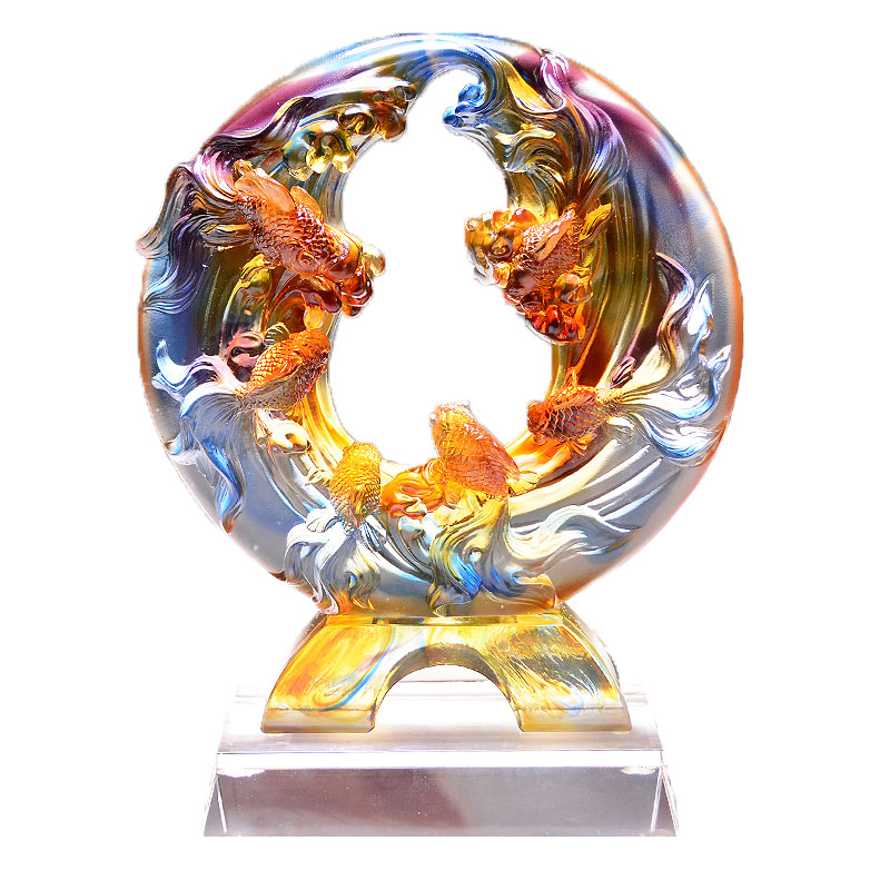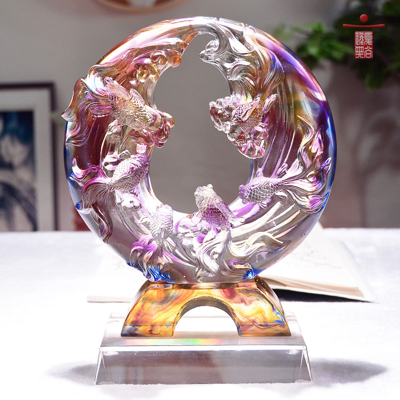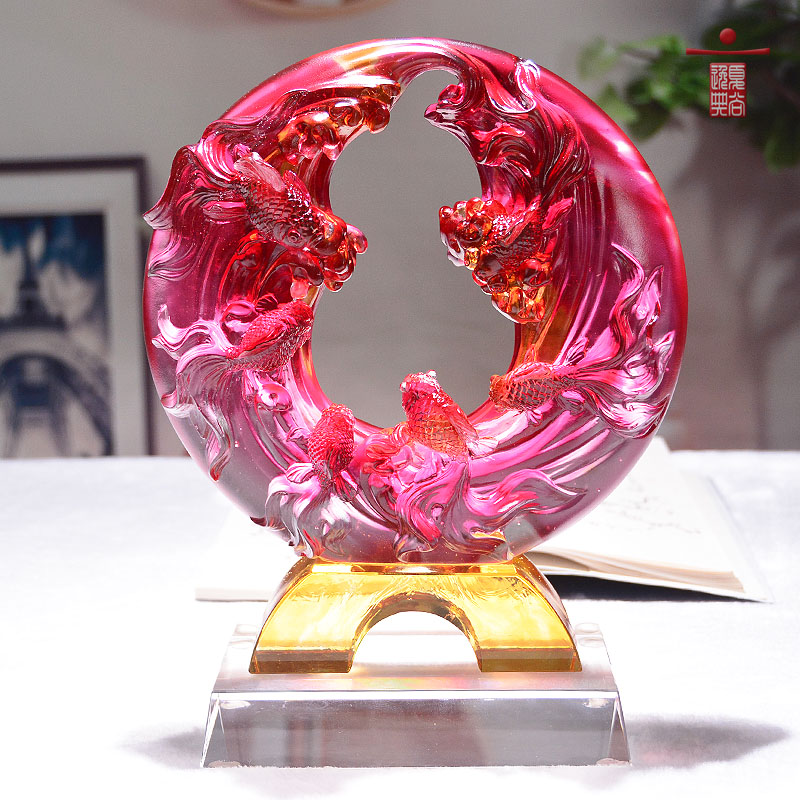 琉璃金鱼摆件客厅金玉满堂圆形装饰工艺品定制刻字乔迁礼物送朋友