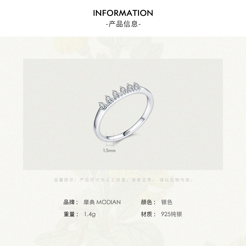 MODIAN 新款s925纯银镶嵌戒指女韩版精致小巧时尚简约ins流行指环