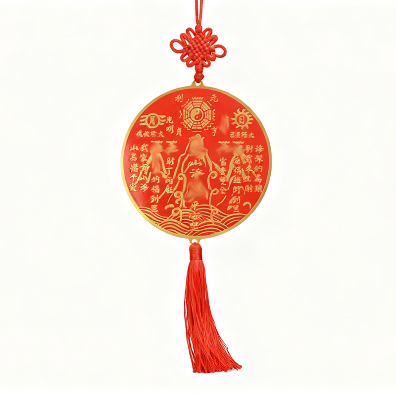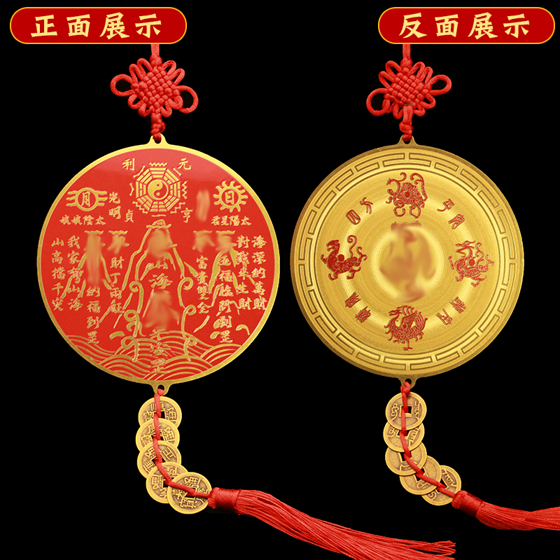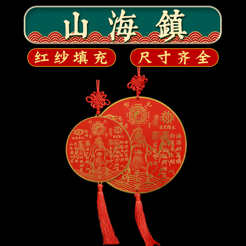 山海镇挂件黄铜室外室内红纱八卦图摆件化尖角天斩家居桌面装饰品