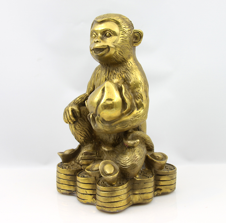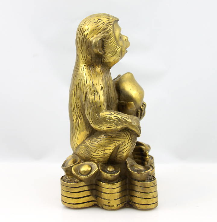 纯铜猴子摆件 抱桃子猴十二生肖猴工艺品摆设 招财客厅中式装饰品