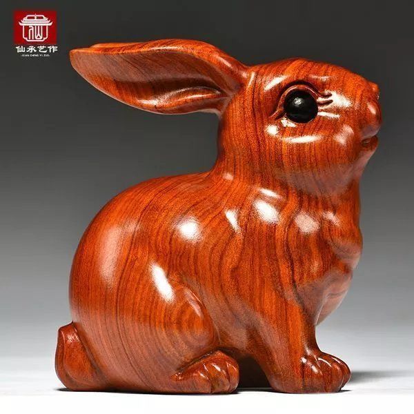 花梨实木雕刻兔子摆件十二生肖木头兔家居风水客厅饰品女生日礼物