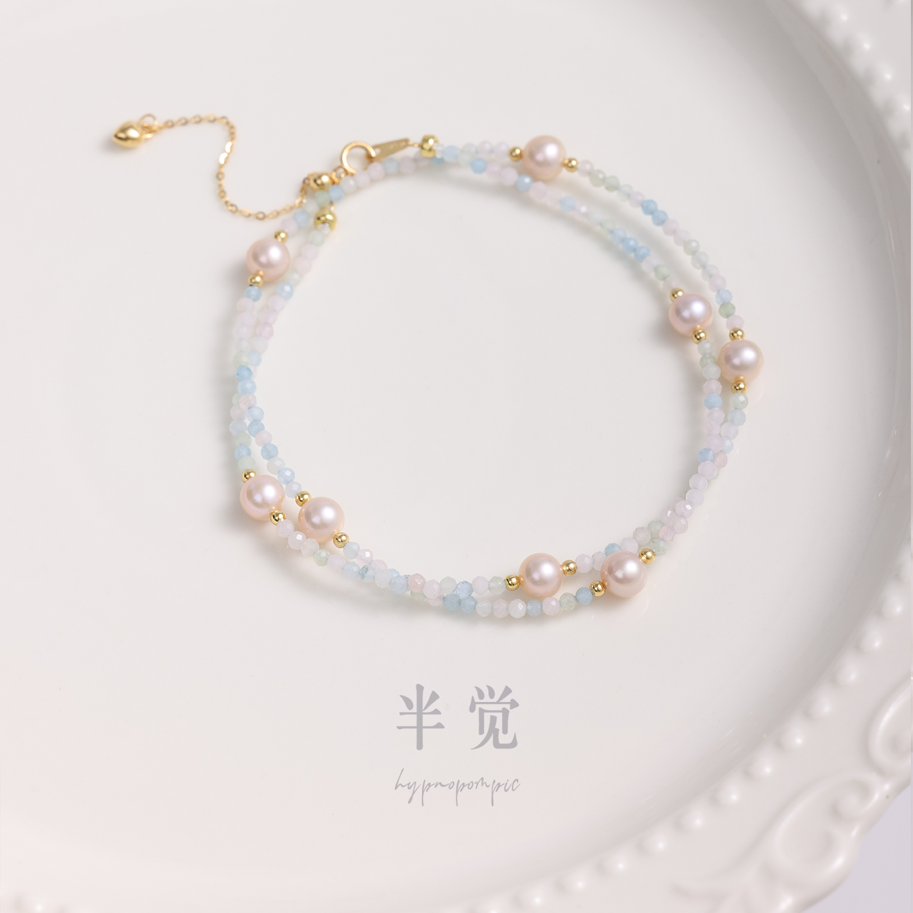 半觉6/6.5mm粉紫色本色小清新配色满天星浅浅糖果温柔系珍珠项链