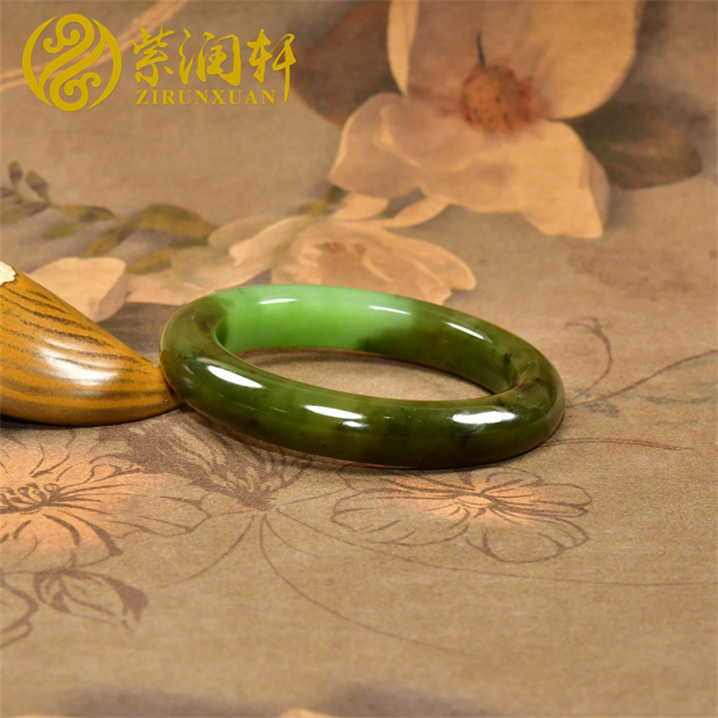 紫润轩和田玉碧玉苹果绿手镯乌兰海老料53 5MM聚糖俏色肥厚款收藏
