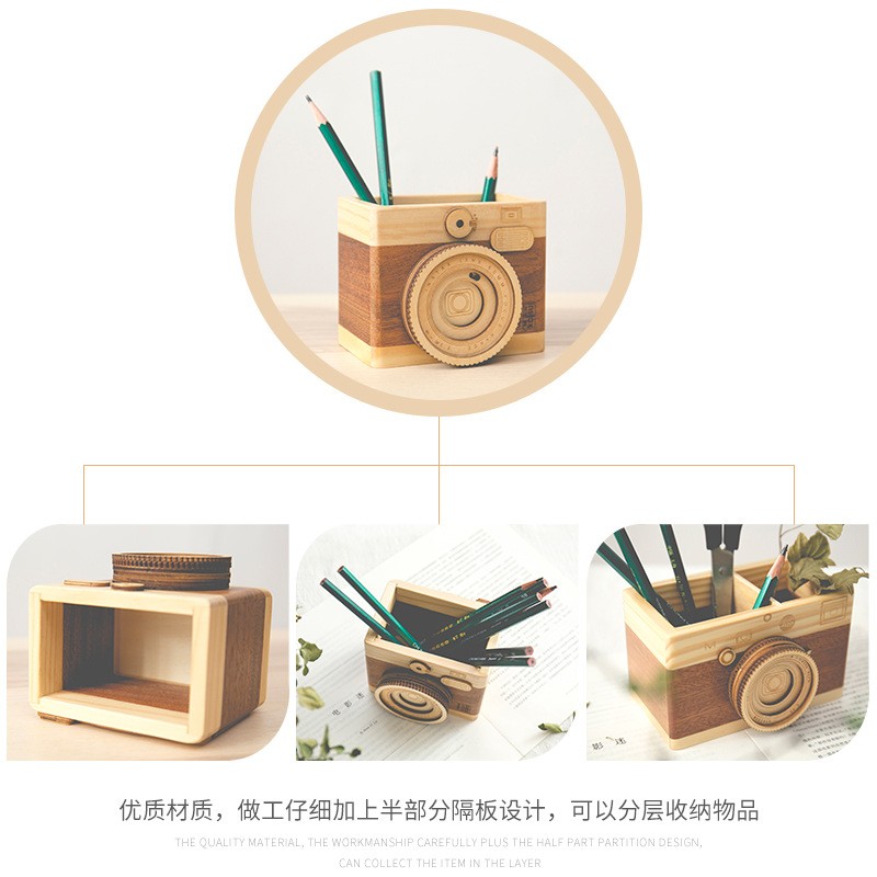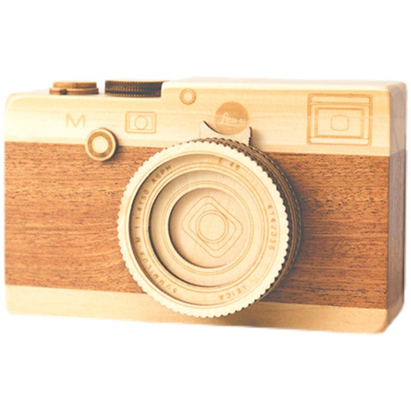 创意简约木质相机笔筒摆件装x饰模型八音盒音乐盒摄影道具生日礼