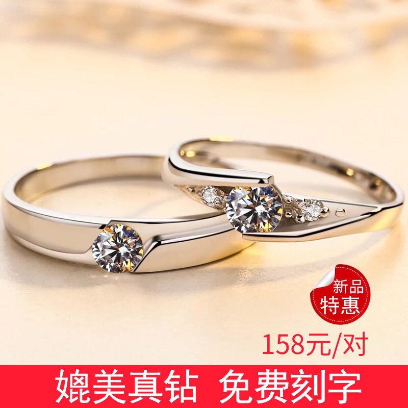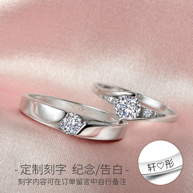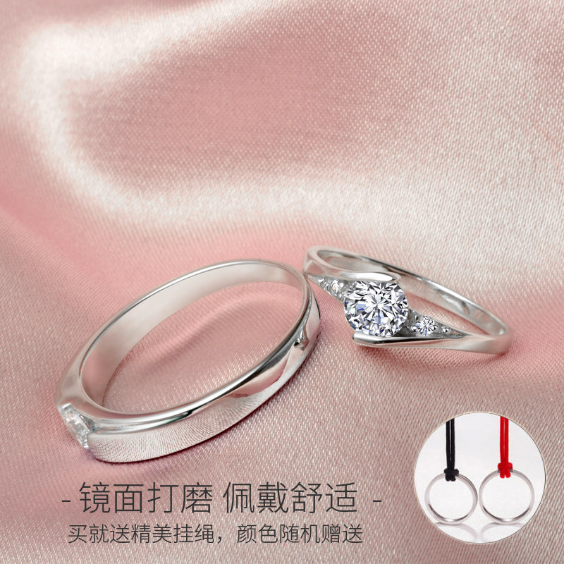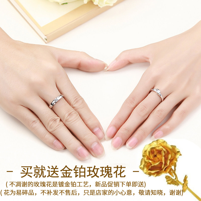 情侣戒指纯银一对闭口男女婚戒日韩版仿真钻戒开口款对戒圣诞礼物