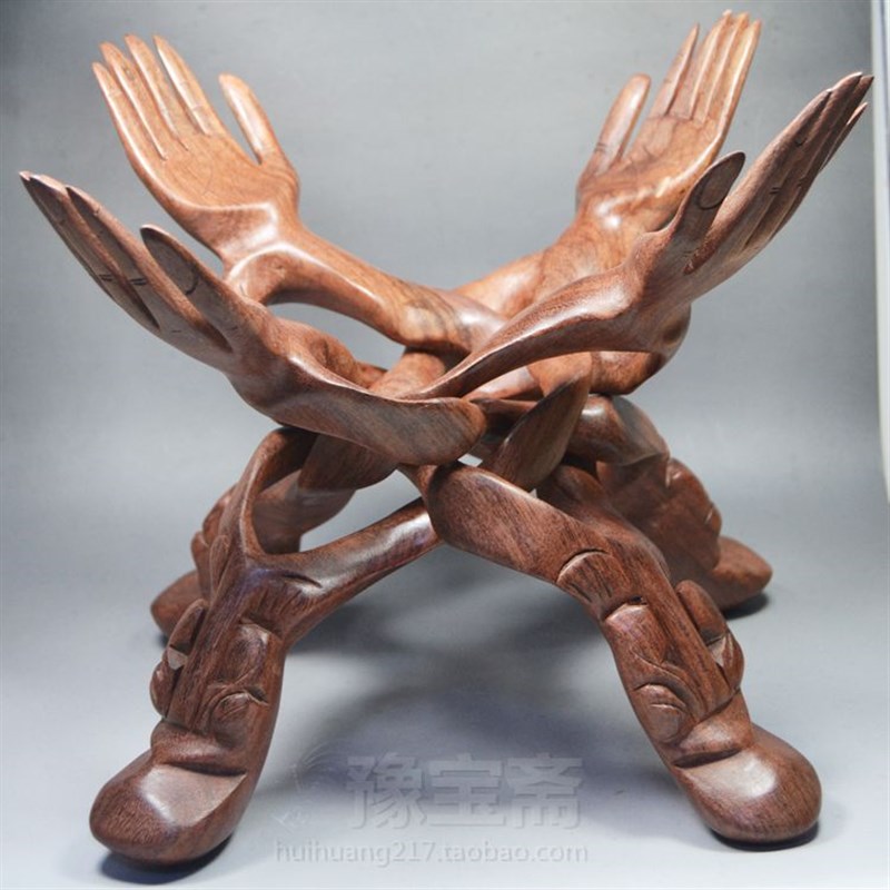 红酸枝招财佛手花架木雕摆件红木工艺品商务礼品家居装饰