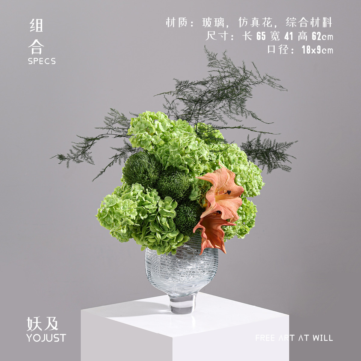 妖及 现代轻奢绿色系仿真花艺【新透】客厅样板间洽谈桌桌面摆件