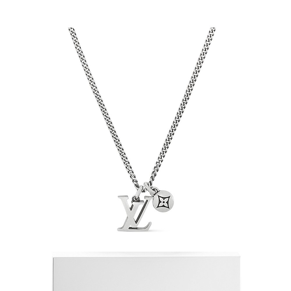 欧洲直邮LV路易威登 Sailor系列男士黑色纯银字母挂饰项链