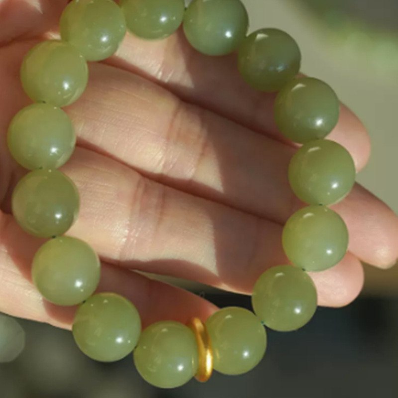 小红书热款青玉圆珠12mm手串和田玉设计款珠串男女款简约大气