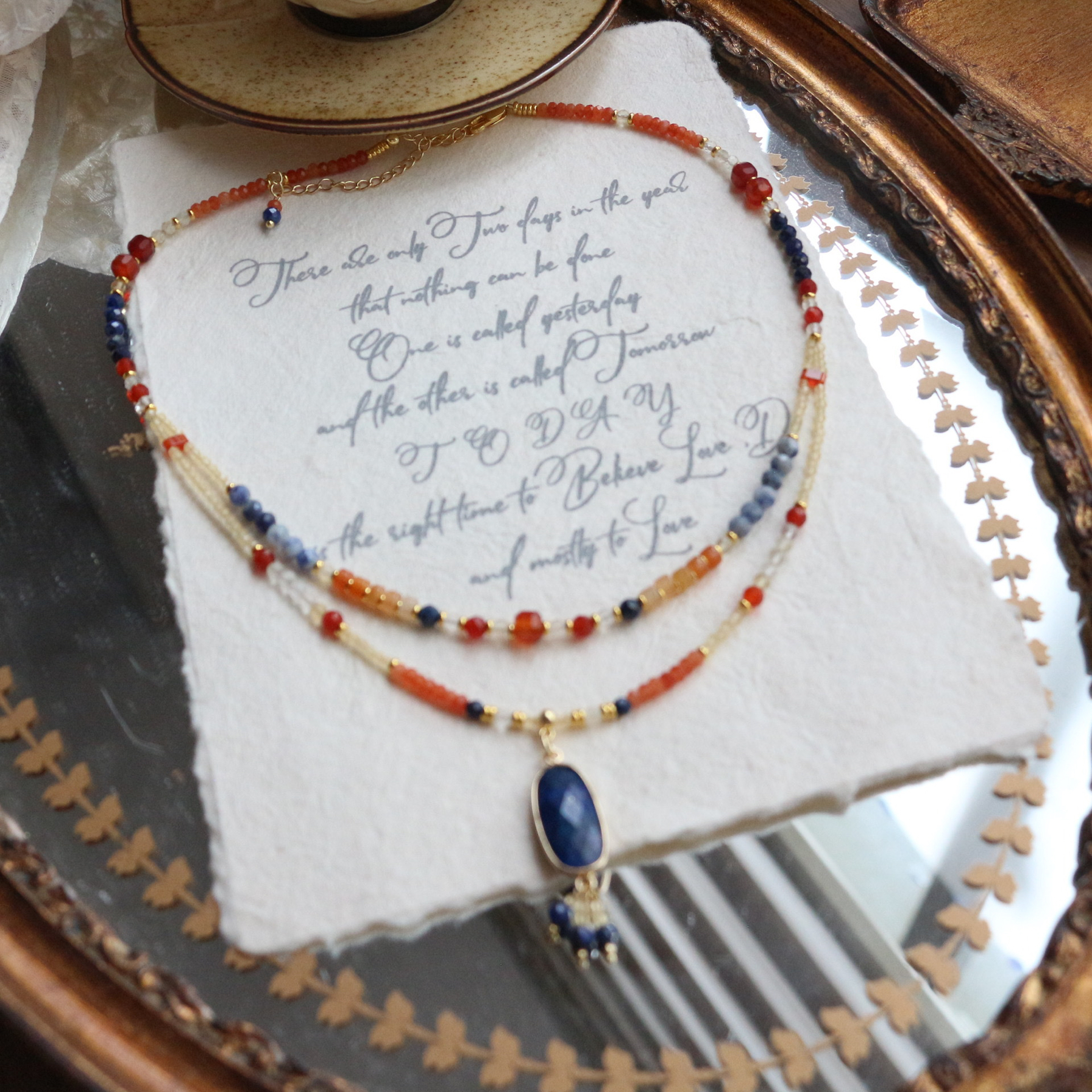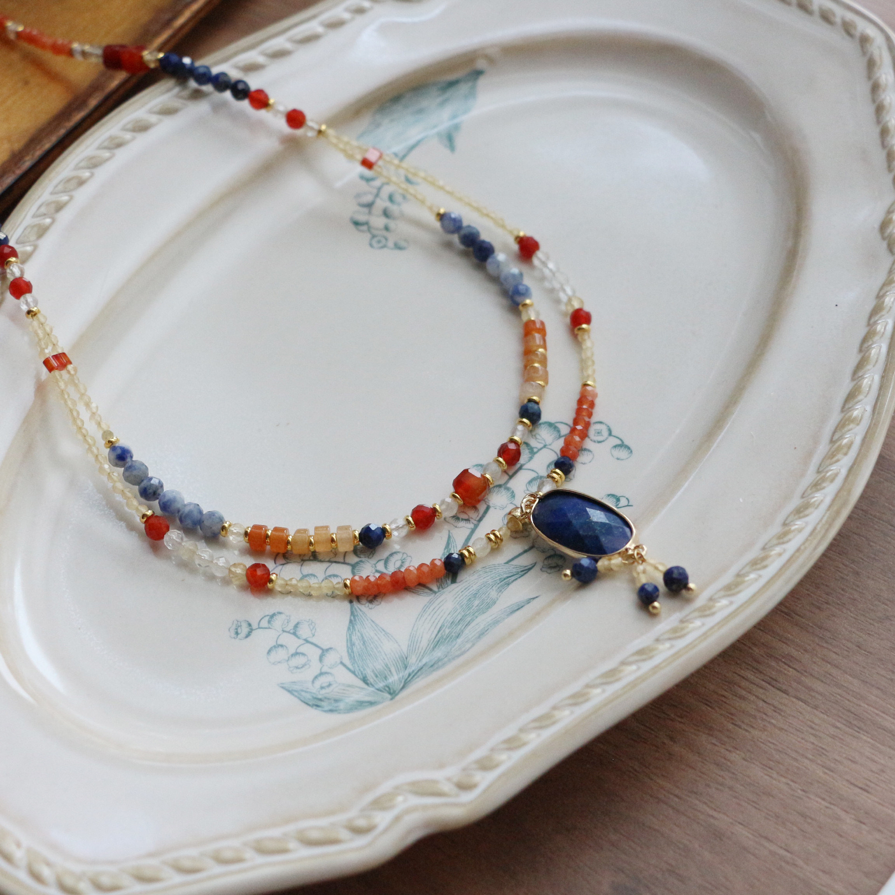 古风红玛瑙项链超高颜值双层吊坠青金石锁骨链设计师款
