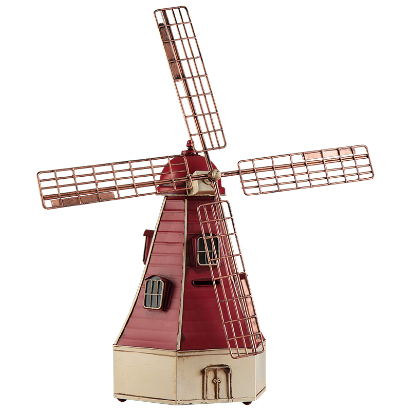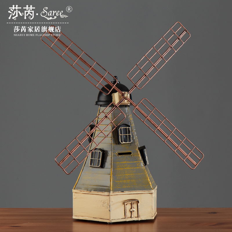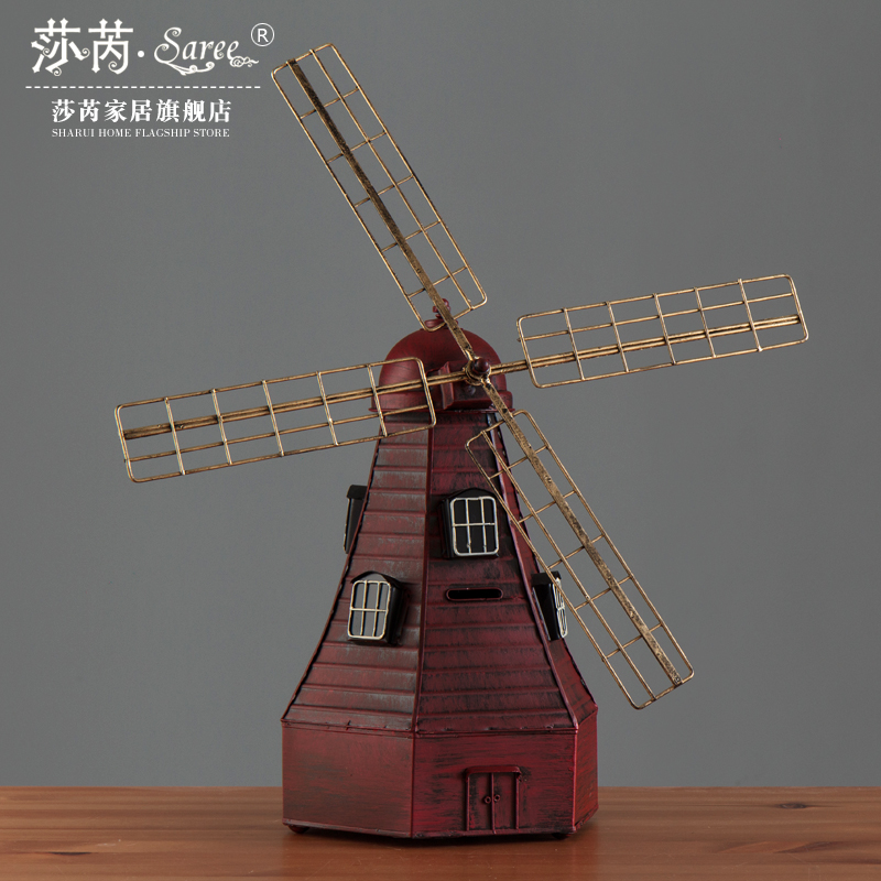 复古怀旧铁艺荷兰大风车存钱罐模型创意影楼婚纱摄影道具装饰摆件