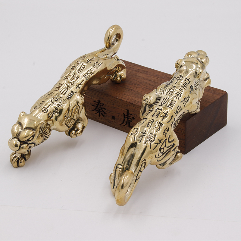 黄铜虎符镇纸摆件毛笔架笔搁镇尺家居饰品工艺品文玩古董手把件虎