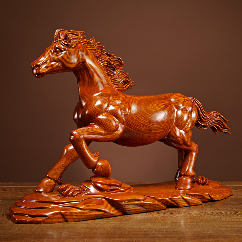 唐趣花梨实木生肖马摆件红木马到成功家居客厅办公室装饰品工艺品