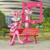 户外卡通打卡粉红兔子玻璃钢雕塑商场网红奶茶店门口装饰落地摆件