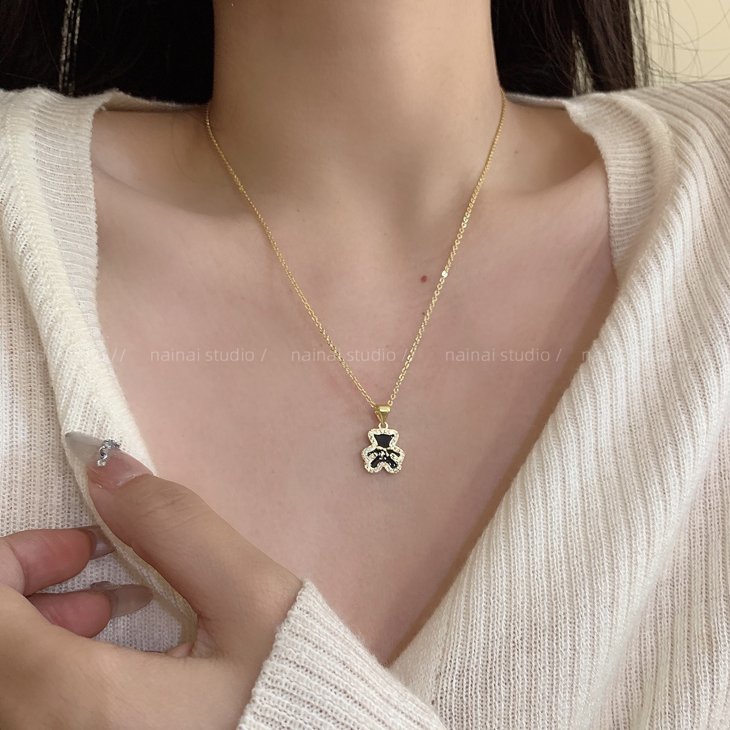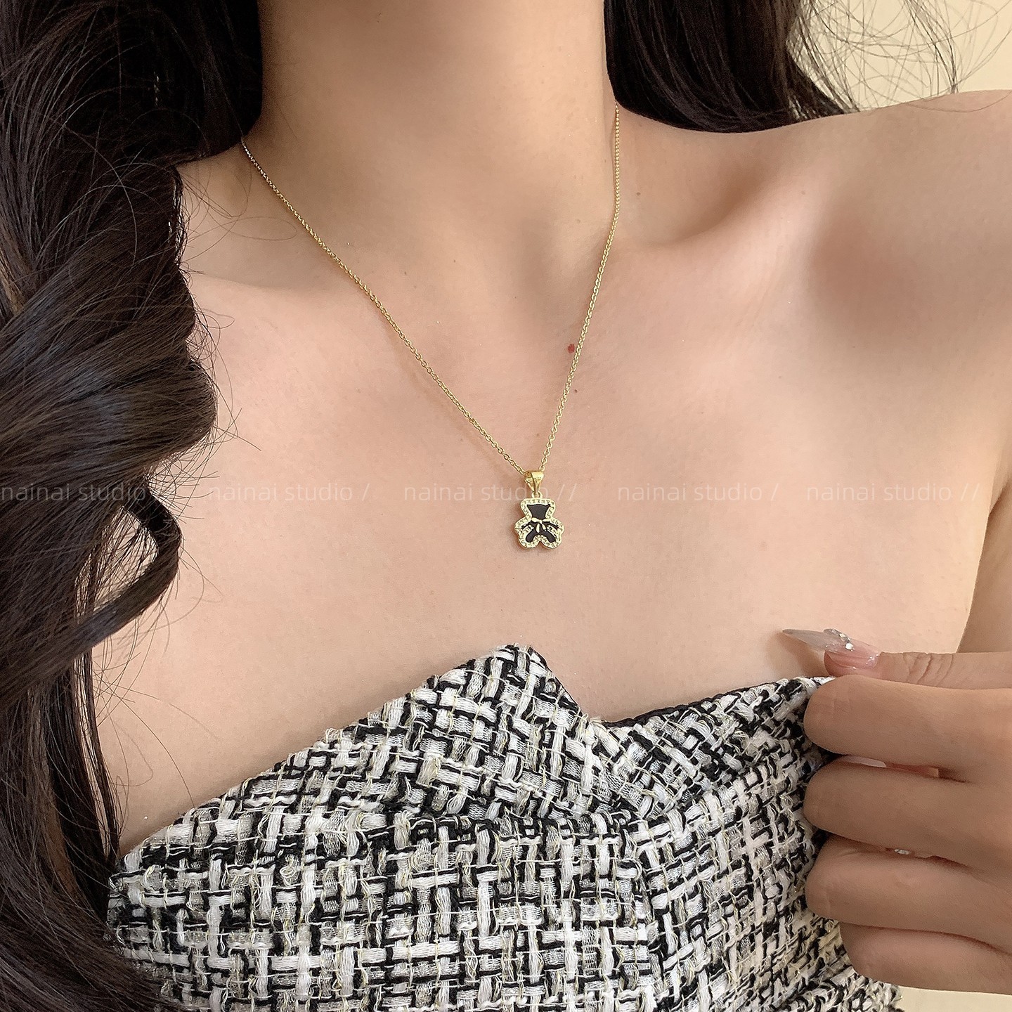 可爱黑色小熊项链~轻奢小众设计高级感2025新款锁骨链奶萌颈链女A