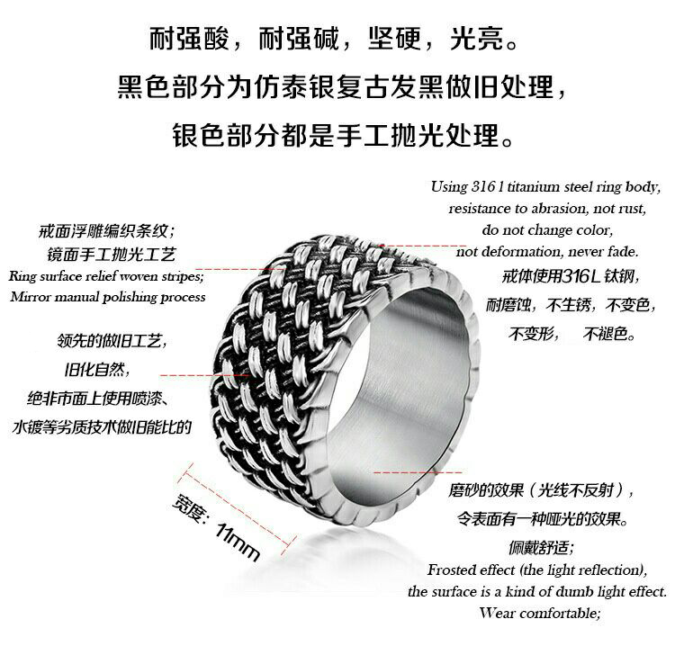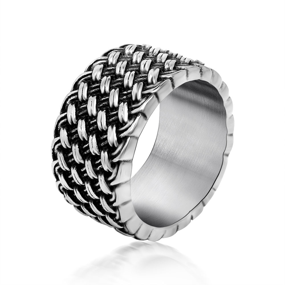复古霸气编织钛钢戒指宽版个性时尚潮男装饰中指指环流行摇滚手饰