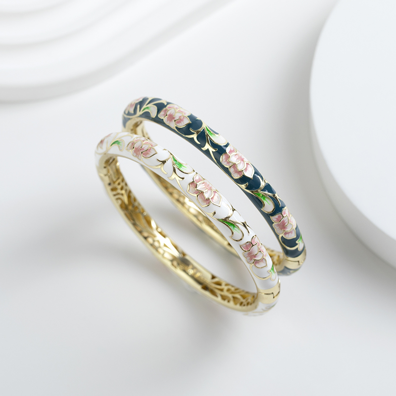 当前位置:首页>商品详情>传统铜胎景泰蓝手镯女子小圈掐丝纯珐琅闺蜜复古时尚镀金送礼旗袍