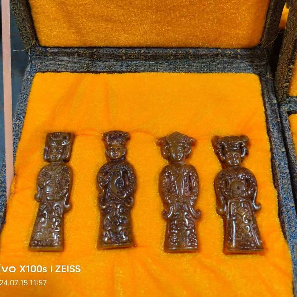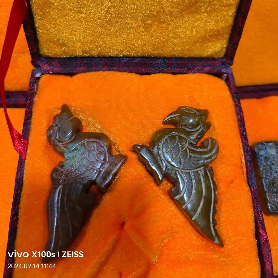 大量批发直播供货古玩仿古做旧工艺品岫玉雕刻龙凤龟瑞兽摆件套盒