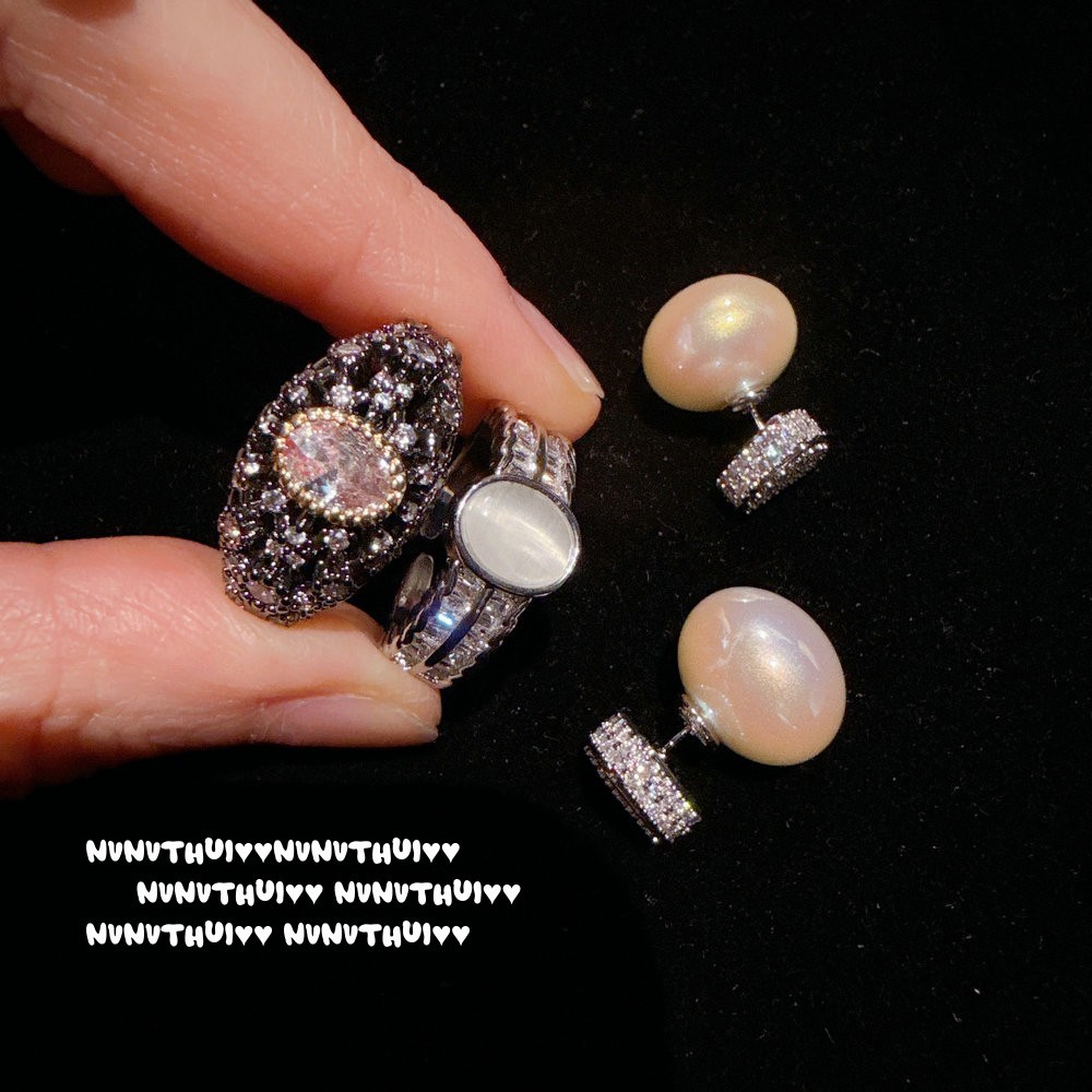 钢琴黑特色满天星宝石戒指 鎏金叠梦 猫眼石闪钻女戒通勤珍珠耳钉