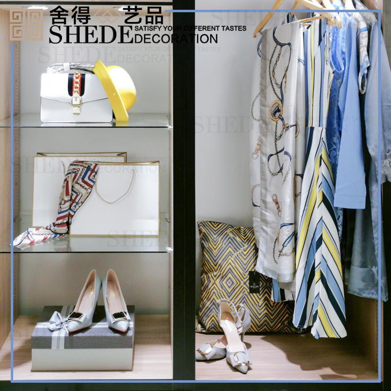轻奢全屋定制女士衣柜样板间衣帽间衣服包高跟鞋装饰品道具摆件十