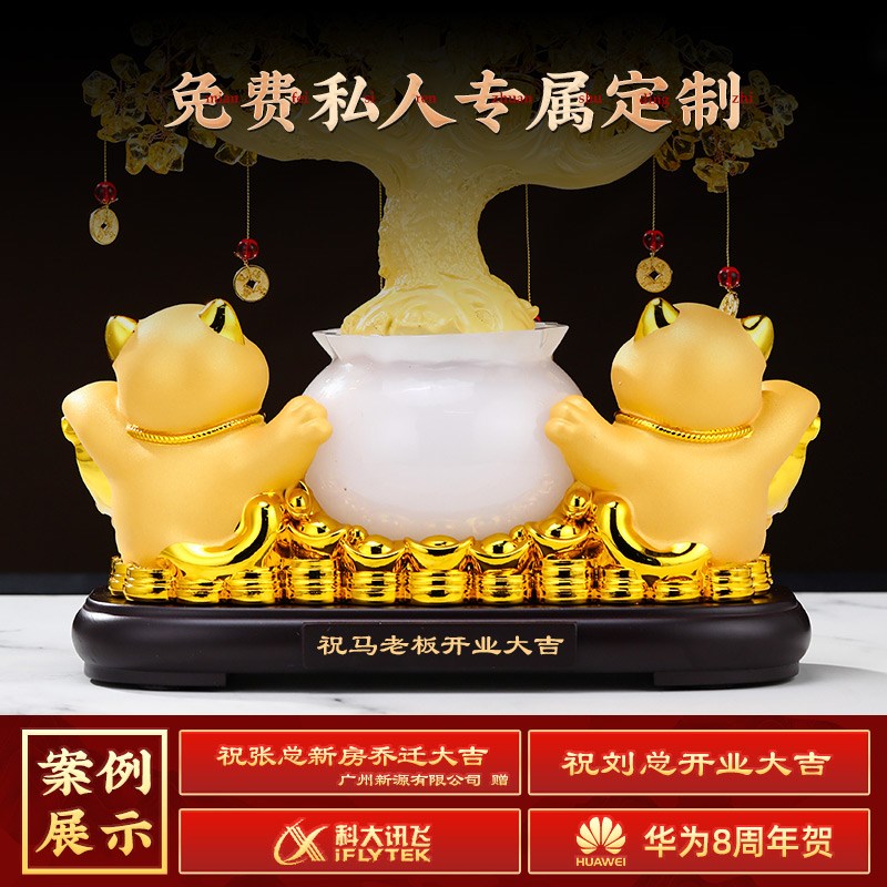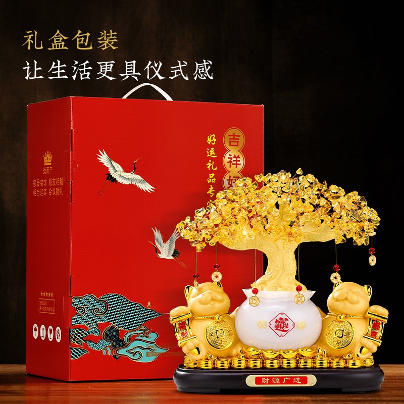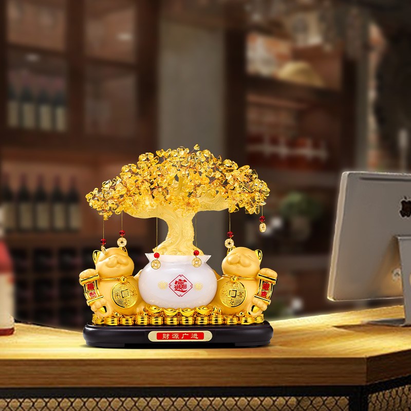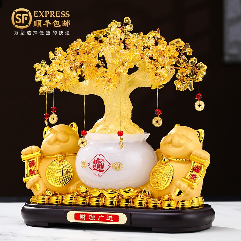 发财树招c财猫摆件开业聚宝盆办公室客厅店铺收银台装饰品乔迁礼