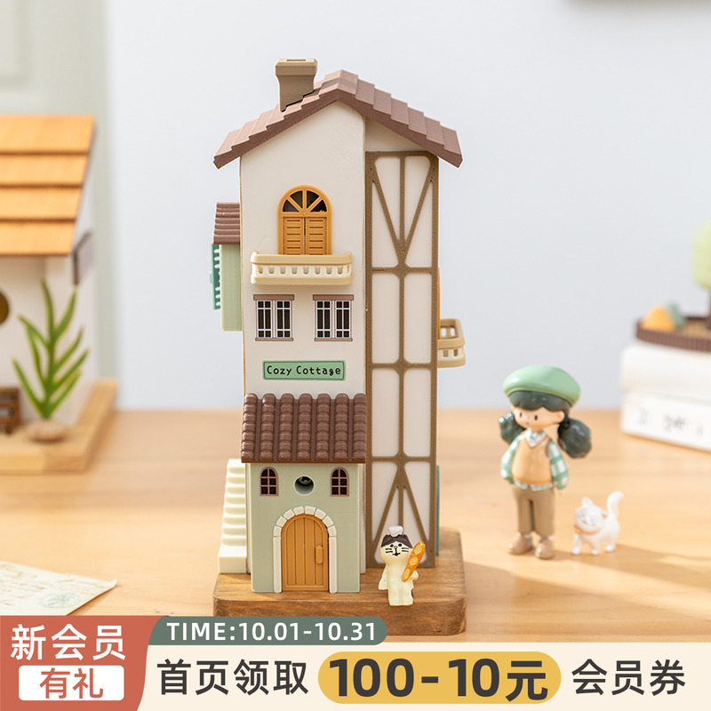 阿楹 法式奶油卡通木屋模型电视书柜艺术儿童房摆件解压礼物玩具