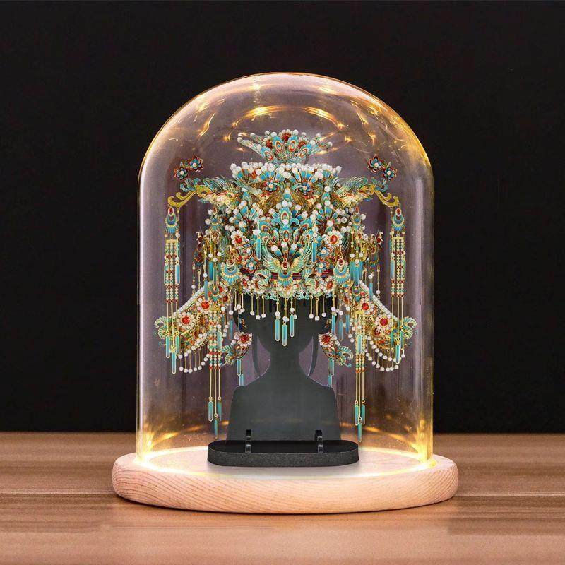 点翠凤冠专用玻璃罩子透明展示防尘发光槽灯底座DIY拼酷手办模型