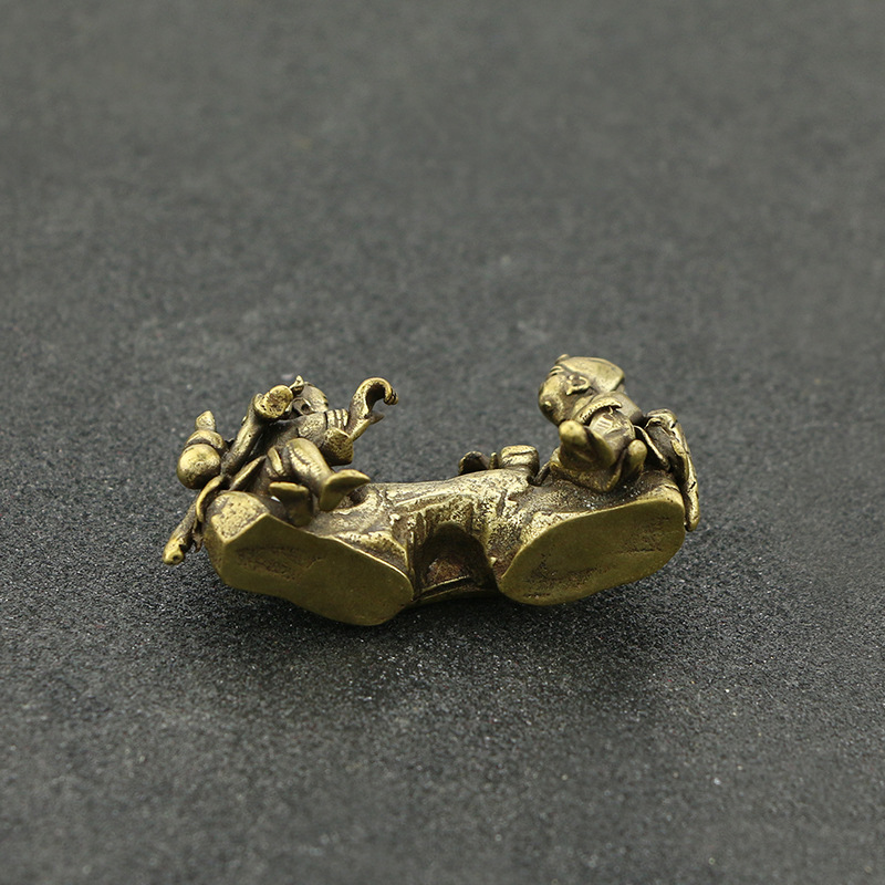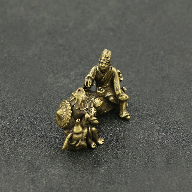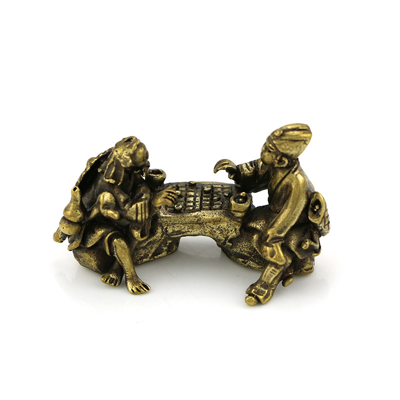 复古纯黄铜棋逢对手小摆件办公家居书房桌面迷你人物文玩手把件