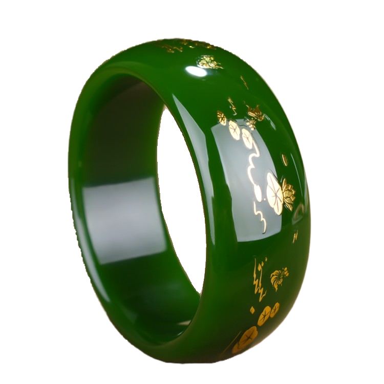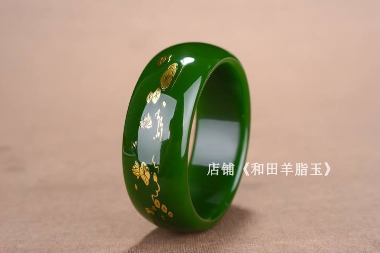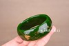 天然新疆和田玉碧玉手镯女士加宽版玉镯子荷花鱼池塘菠菜绿玉手镯