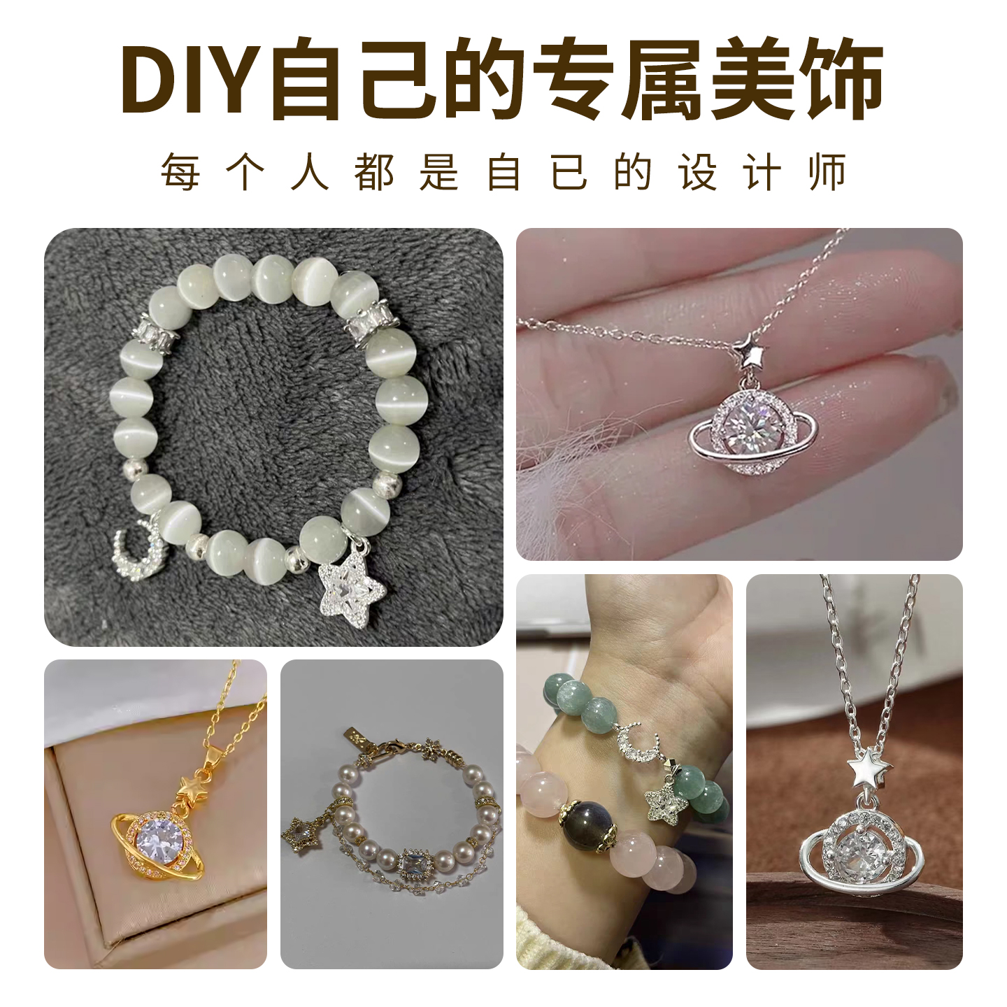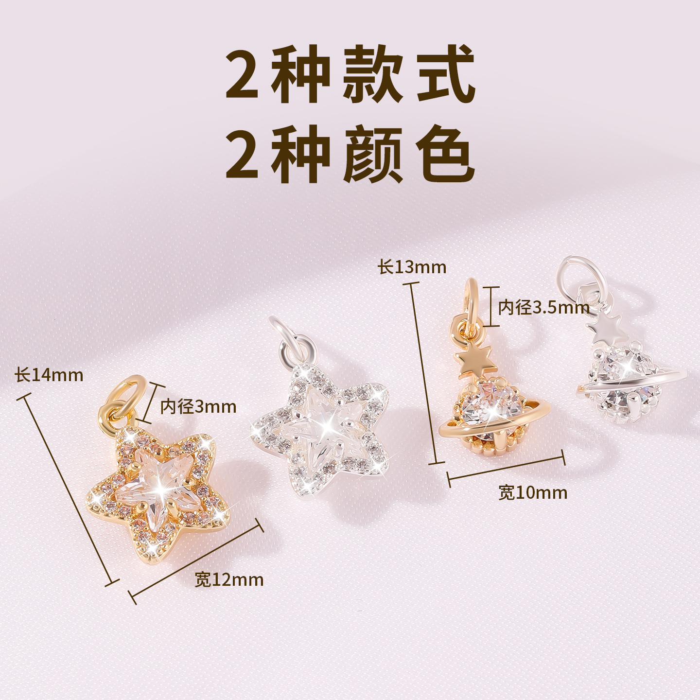 14k包真金立体星星diy配件手工手链项链镶锆石小吊坠挂件提溜配饰