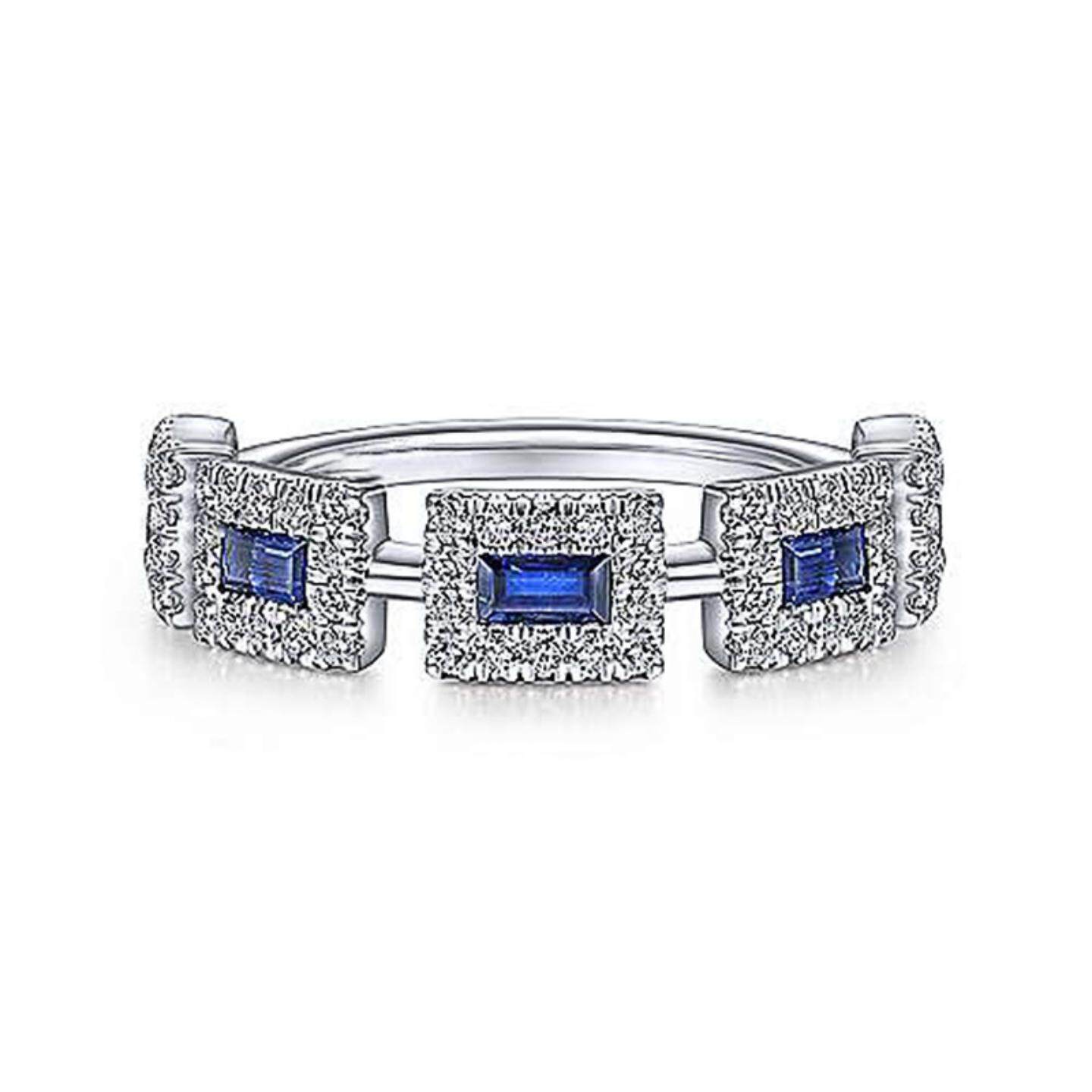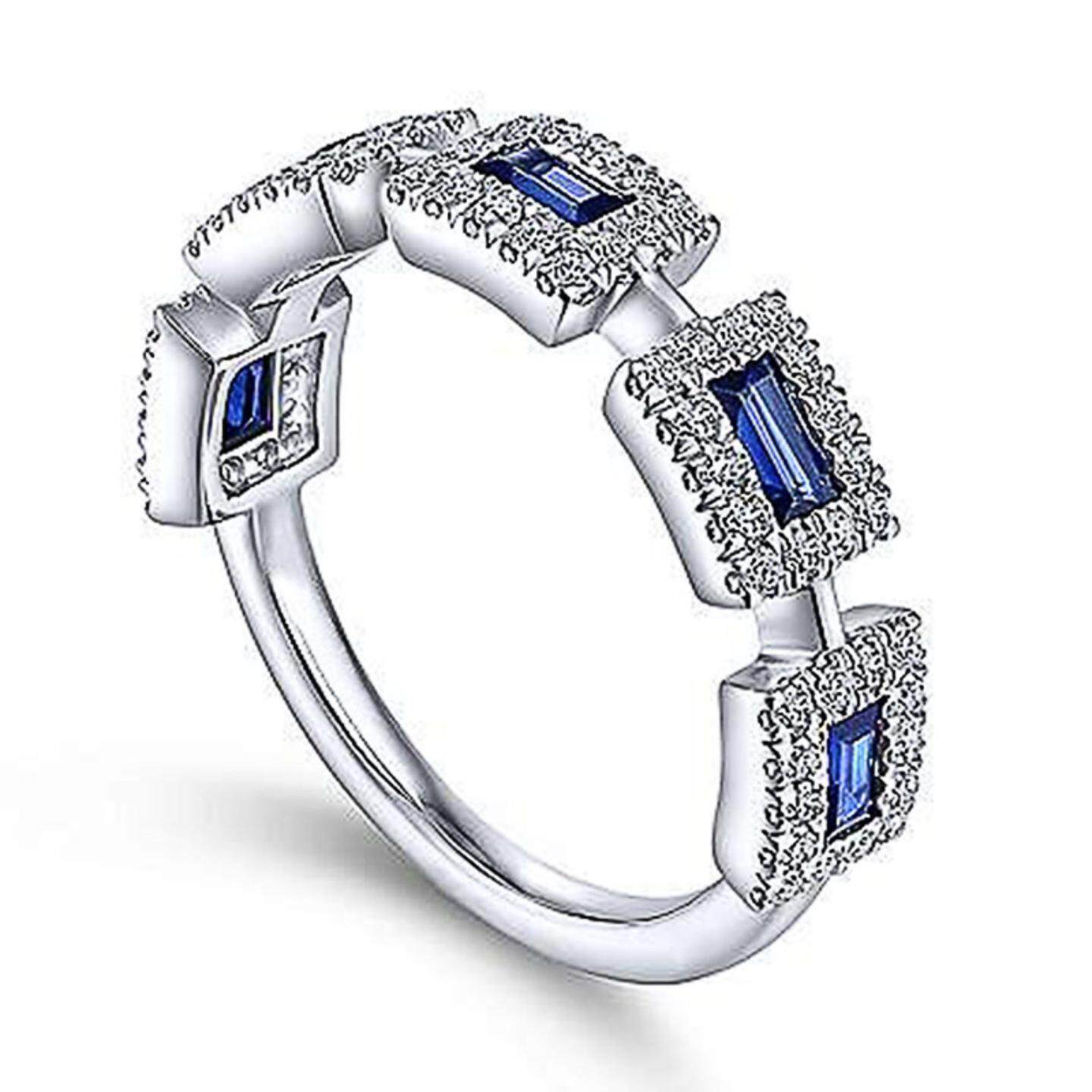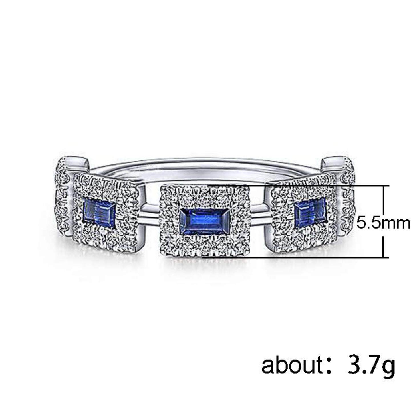 轻奢shein新款热卖 镶嵌蓝色方形锆石戒指女 欧美时尚订婚条戒